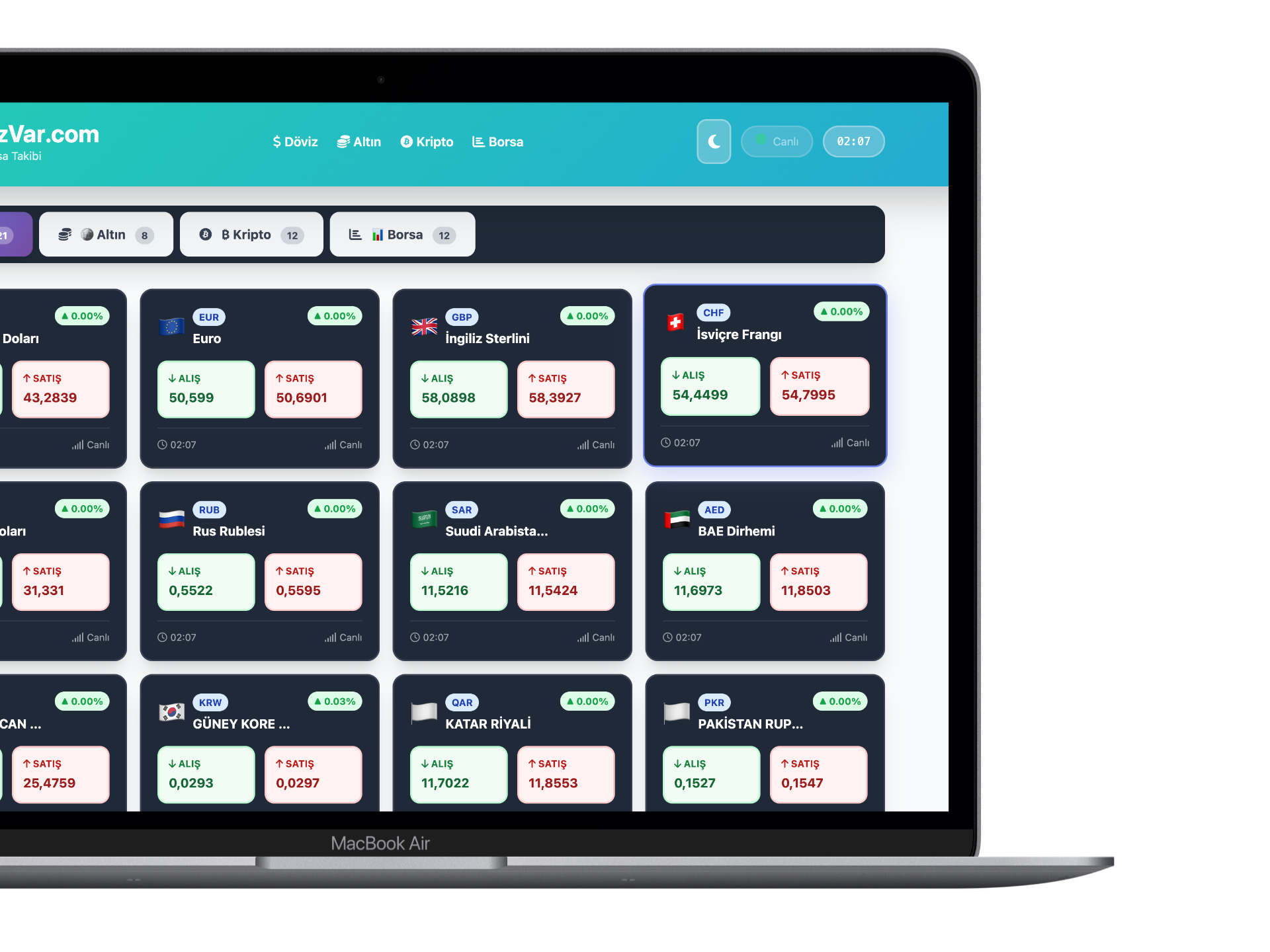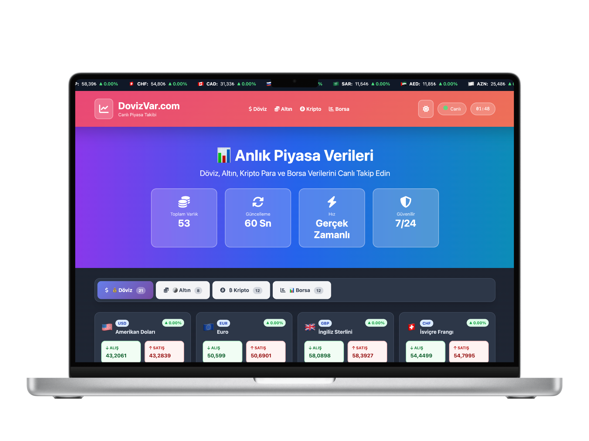 • ⚡ Gerçek Zamanlı Veri Akışı: Sayfa yenilemeden anlık döviz, altın ve borsa takibi.