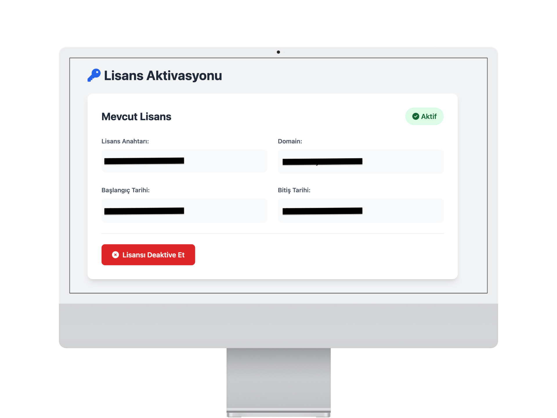 • Özel Lisans Kodu: Her satın alımda, kullanacağınız domain adresine özel, benzersiz bir lisans kodu üretilir.