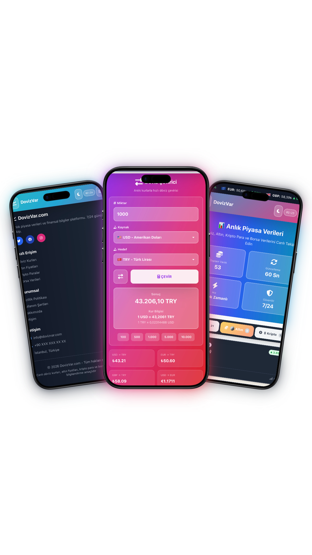 • 📈 Geniş Veri Yelpazesi: 22+ Döviz, 8+ Altın türü, Kripto paralar ve Borsa endeksleri.