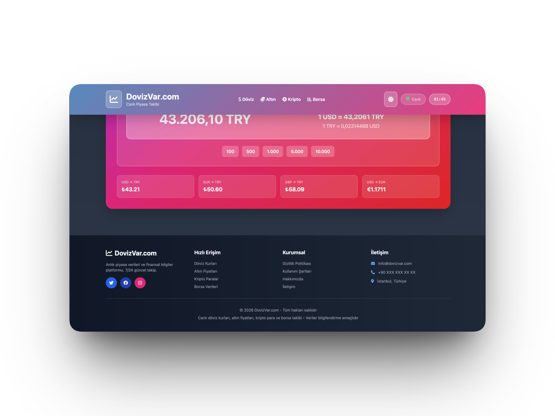 DovizVar PRO v1.0 | Admin Panelli | Gelişmiş Canlı Finans Takip Script(Ömür Boyu)